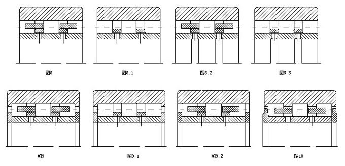 圆柱滚子背衬轴承有两列或三列滚子,有满滚子轴承(无保持架)或带保持架轴承形式,可以带有或不带整体式挡边或挡圈。无挡边轴承的优点在于它们特别简单的几何形状和非常高的径向载荷能力。无挡边或挡圈的圆柱滚子背衬轴承不能承受任何轴向负荷。因此有必要在外圈和支承鞍座侧面之间放置青铜或塑料止推垫圈。带有挡边(或挡圈)的背衬轴承不需要止推垫圈,因为这些轴承的设计使它们能够承受同时作用的径向力和轴向力。圆柱滚子轴承是常用的背衬轴承。