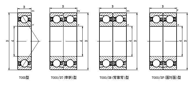 | 现型号 | 原型号 | d | D | B | α° | rsmin | r1smin | 动 | 静 | 脂 | 油 | Mass |