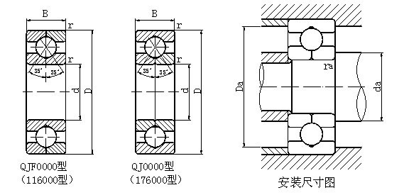 | 现型号 | 原型号 | d | D | B | rsmin | 动 | 静 | 脂 | 油 | damin | Damax | ramax | Mass |