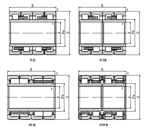 轧机用四列圆柱滚子轴承其结构主要有以下几种基本型式。